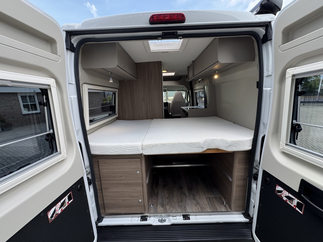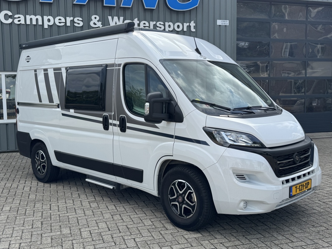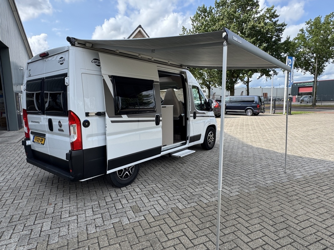 NIEUW BINNEN - Een prachtige, zo goed als nieuwe, Carado (by Hymer) 540 CVE Pro buscamper met een lengte van maar 5.40m, een vast bed en een 140 pk sterke 9 traps automaat! Deze buscamper is Nederlands geleverd en hebben we mogen inkopen van de 1e eigenaar!