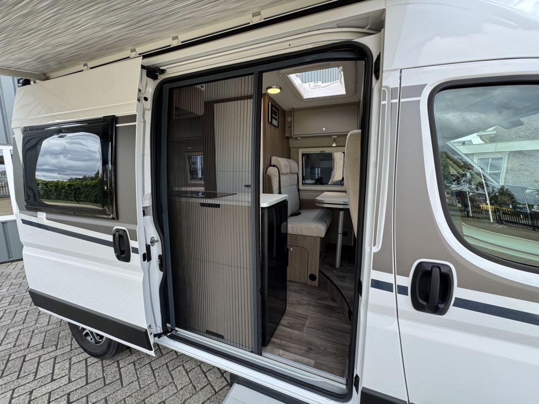"De Carado CV540 maakt indruk met zijn compacte ontwerp, dat een efficiënt gebruik van de ruimte en gemakkelijk manoeuvreren mogelijk maakt. Deze carrosserie is ideaal voor reizigers die waarde hechten aan flexibiliteit en onafhankelijkheid en biedt een uitstekende balans tussen wooncomfort en mobiliteit.