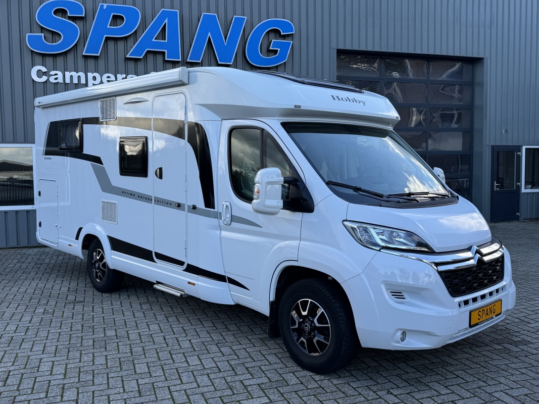NIEUW BINNEN - Een prachtige Hobby Optima V65 GQ On Tour Edition. Dit is een half integraal camper met een gewild formaat en indeling! Met een lengte van maar 698 cm is hij verrassend ruim van binnen met een groot queensbed (ca. 2 meter lang)! Deze camper hebben we mogen inkopen van de 1e eigenaar en verkeert in een erg nette staat!