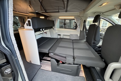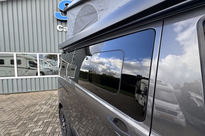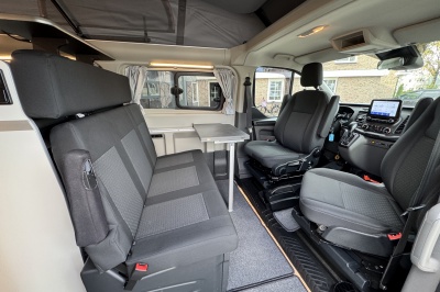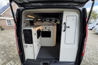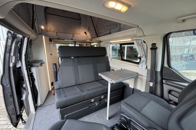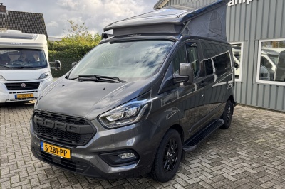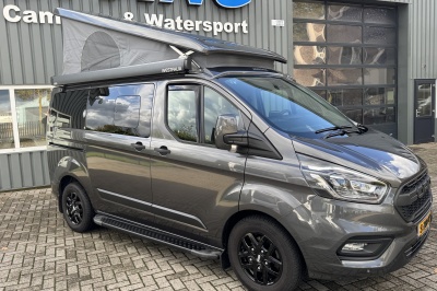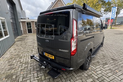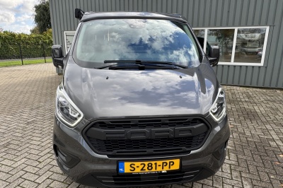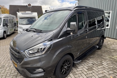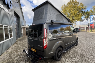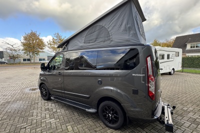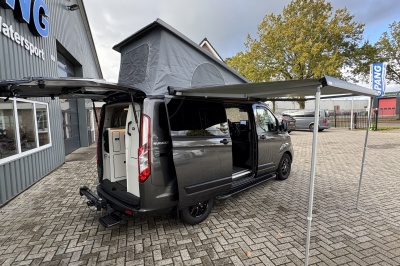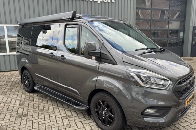 Prachtige goed onderhouden compacte Ford Westfalia Custom Nugget in een prachtige Chrome Grey Metallic kleur en accessoires in zwart accenten. Deze buscamper heeft 5 ruime zitplaatsen, een L-keuken op werkhoogte achterin en een groot twee persoons pop up dak / hefdak / slaapdak en zitbank welke is om te leggen tot een 2 persoons bed. Ook kunt u doorlopen vanaf de achterklep tot aan de cabine!