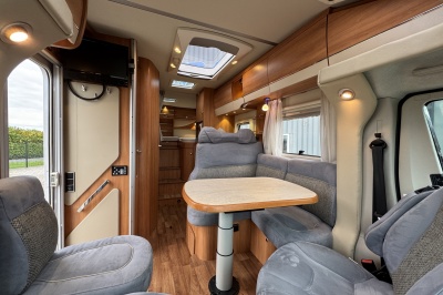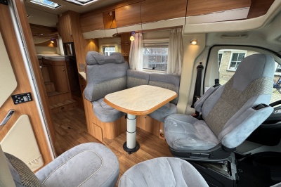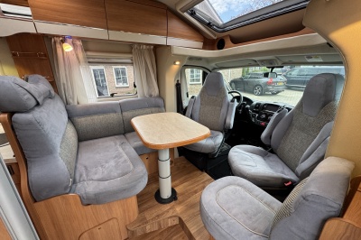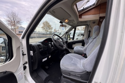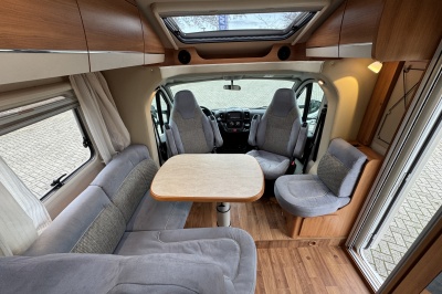 Voorin twee draai- en verstelbare comfortstoelen met daarachter een L-zit en langsbank! Door de voorstoelen te draaien creëert u een ruime en gezellige zitgroep! Eventueel is de zitgroep ook om te leggen tot een extra bed.