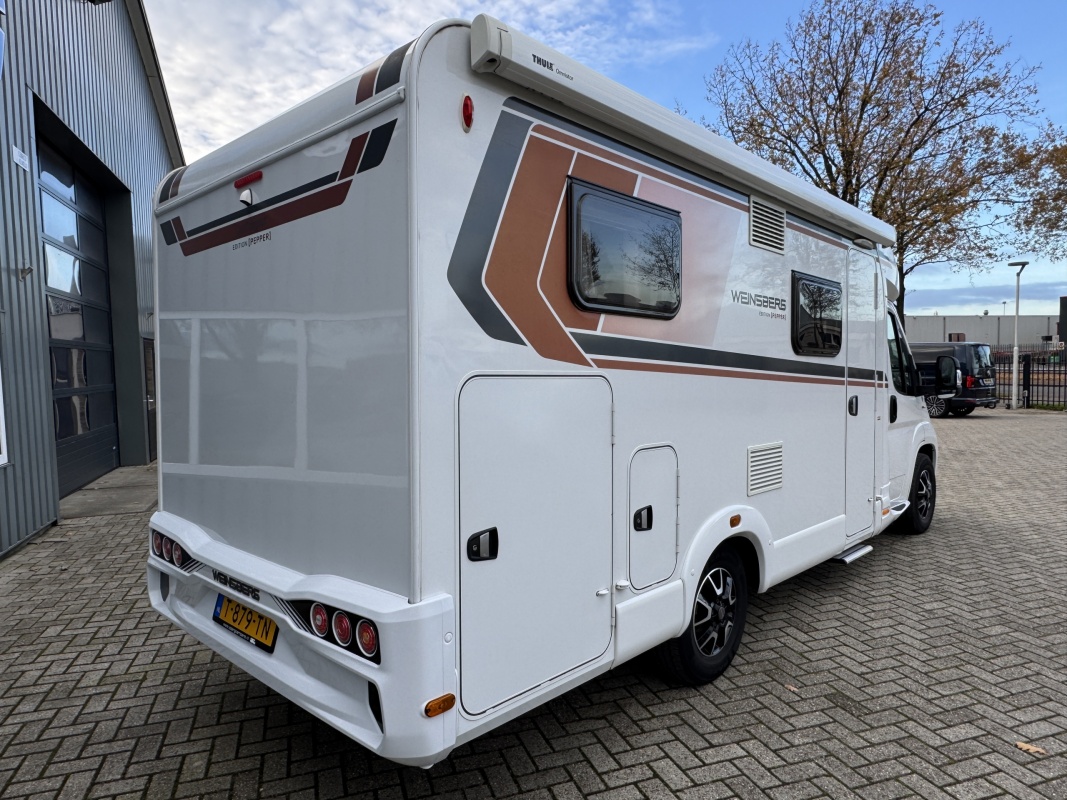 NIEUW BINNEN - Mooie compacte Weinsberg Pepper 600 MEG 50th Anniversary Edition half integraal camper met enkele bedden, XL garage en 9 trap automaat! Met een lengte van maar ca. 6.75m en een breedte van ca. 2.20m is deze Pepper erg wendbaar en komt u op de mooiste plekken! In combinatie met de 9 traps automaat rijdt u zorgeloos het avontuur tegemoet!