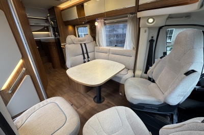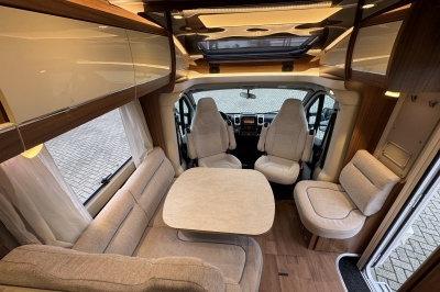 Voorin twee draai- en verstelbare comfortstoelen met daarachter een L-zit en langsbank! Door de voorstoelen te draaien creëert u een ruime en gezellige zitgroep! Eventueel is de zitgroep ook om te leggen tot een extra bed.