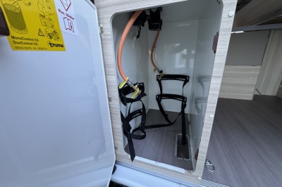 Achterin twee royale enkele bedden met een gemakkelijke instap. Boven de bedden is veel kastruimte en eronder een enorme garage en ook aparte kasten en lades. De bedden zijn eenvoudig omhoog te klappen voor een grote transportruimte.