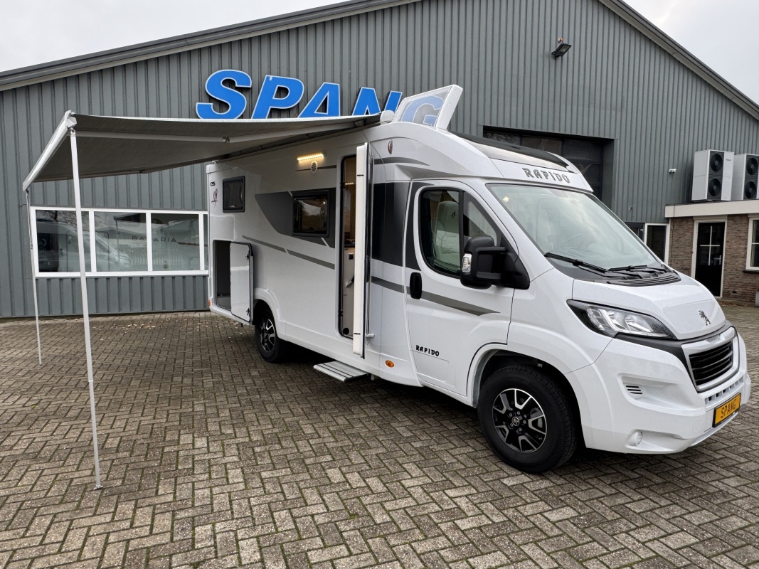 NIEUW BINNEN - Ingekocht van de 1e eigenaar deze zo goed als nieuwe Rapido C55 half integraal camper met enkele bedden. Deze camper is enorm ruim van binnen door zijn slimme indeling, maar met een lengte van maar ca. 6.72m en een breedte van 2,17m compact van buiten. Hierdoor bent u zeer wendbaar en is geen weg te smal! Doordat er Thule 6300 luifel gemonteerd is steekt de luifel ook niet uit!