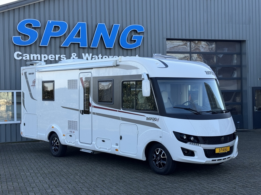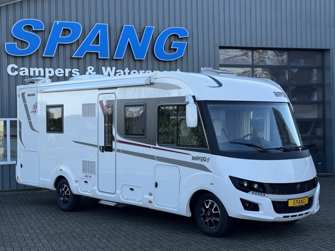 NIEUW BINNEN - Een prachtige, UNIEKE, Rapido 8065DF integraal camper uit 2018 met een face tot face zit, lage enkele bedden en een badkamer achterin! Hij is uitgerust met een 150 pk sterke Fiat Ducato met automaat! We hebben deze camper mogen inkopen van de 1e eigenaar!