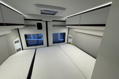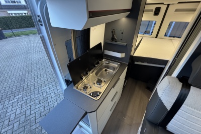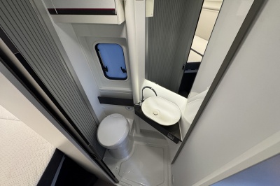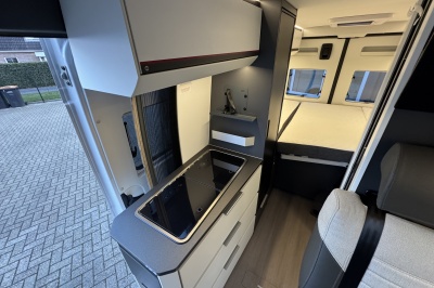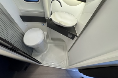 Dankzij het grote Skyroof geniet je binnen van veel licht en een ruimtelijk gevoel. De badkamer is bijzonder slim uitgevoerd met een volwaardige douche, waarbij de wastafel en toiletkast zijn bevestigd op een draaibare wand. Zo benut je de ruimte optimaal zonder in te leveren op comfort.