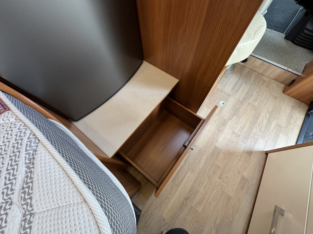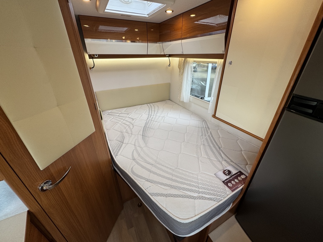 Achterin de camper vindt u het comfortabele Franse bed met daaronder een zeer ruime opbergruimte / garage, ideaal voor bagage, kampeermeubilair of sportuitrusting.