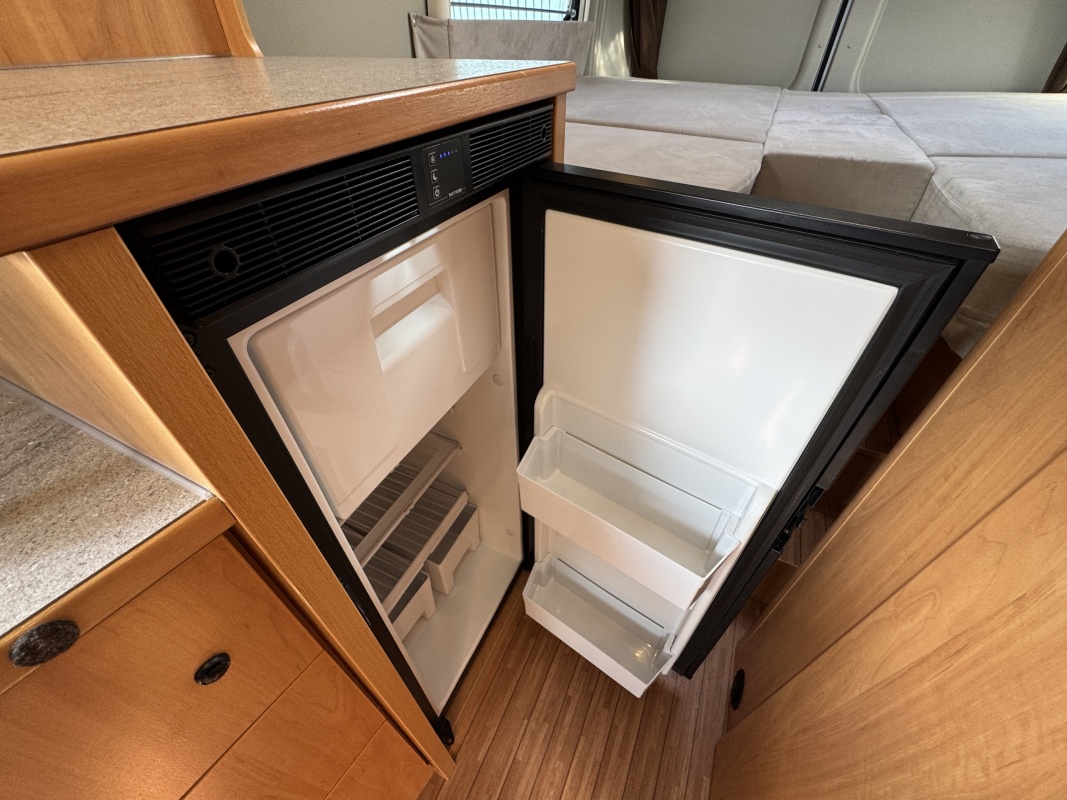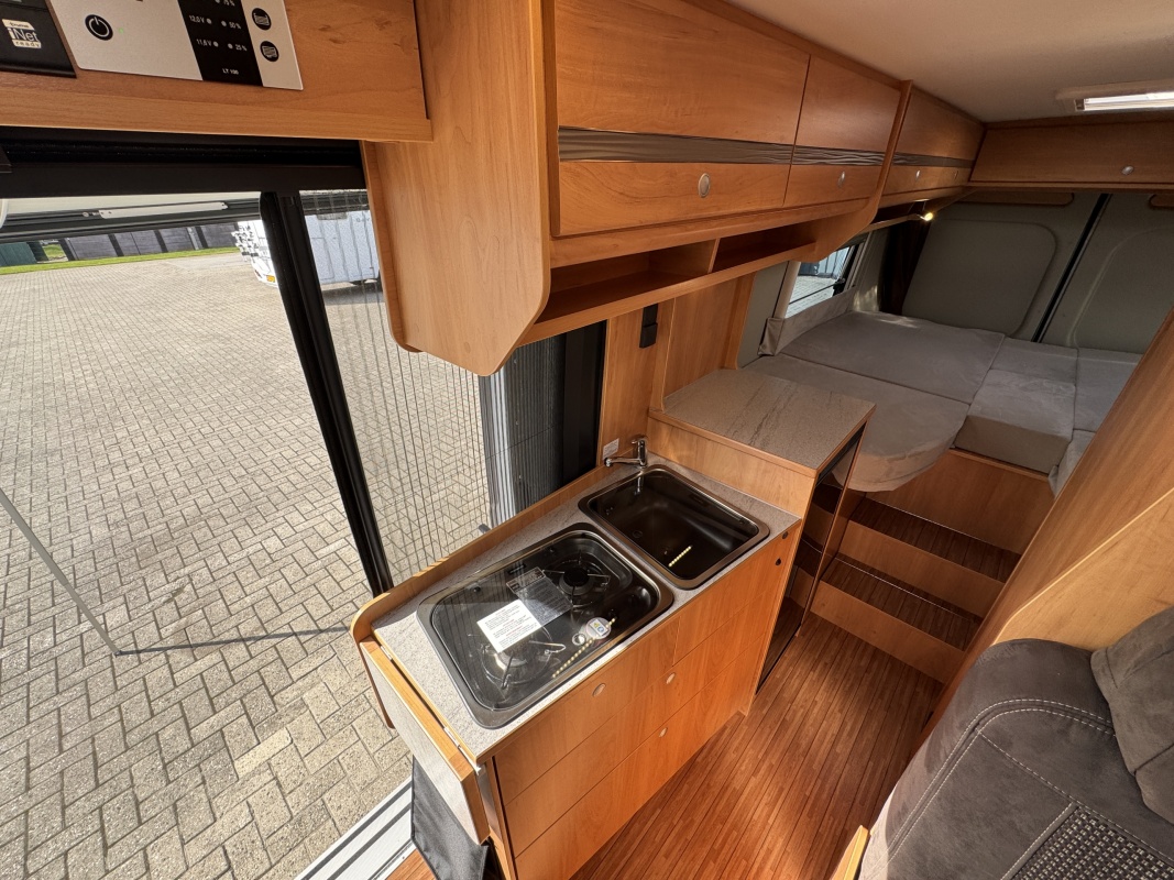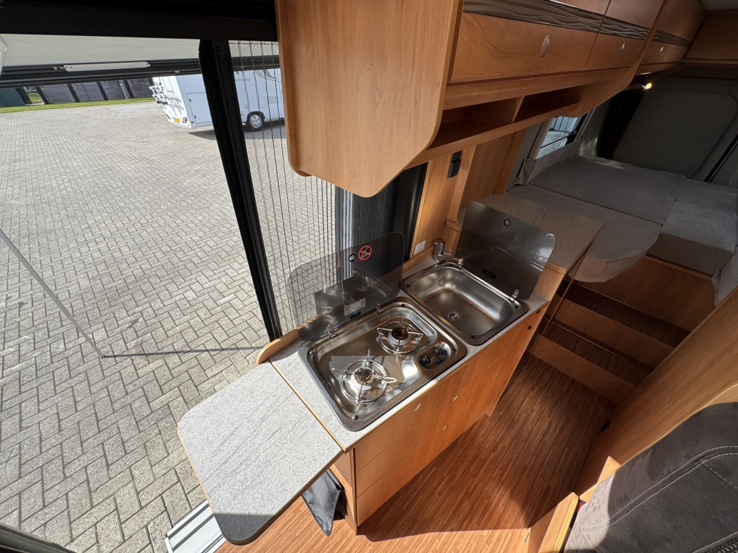 In het midden van de camper vindt u de complete keuken, voorzien van: