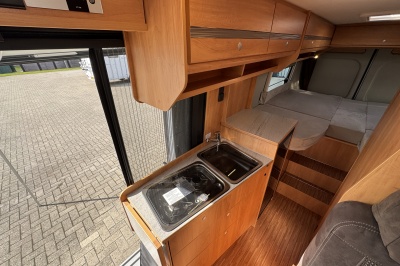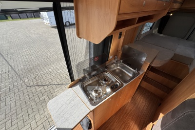 In het midden van de camper vindt u de complete keuken, voorzien van: