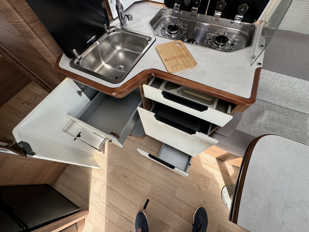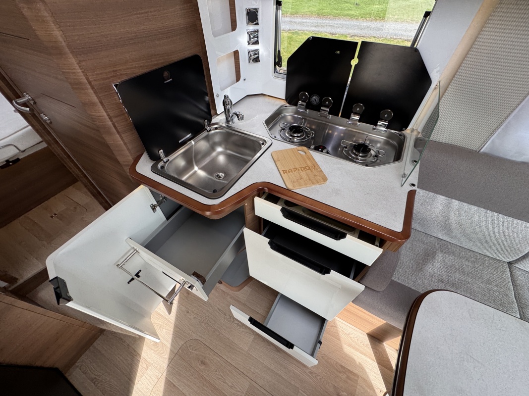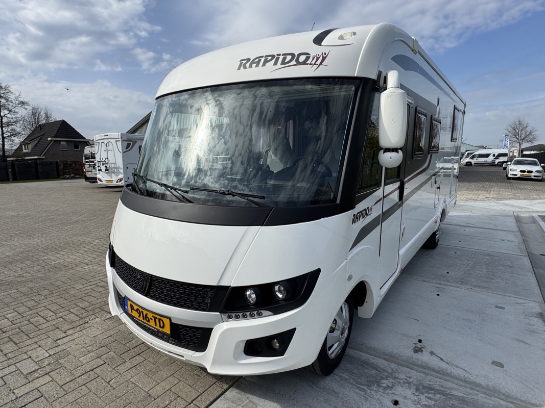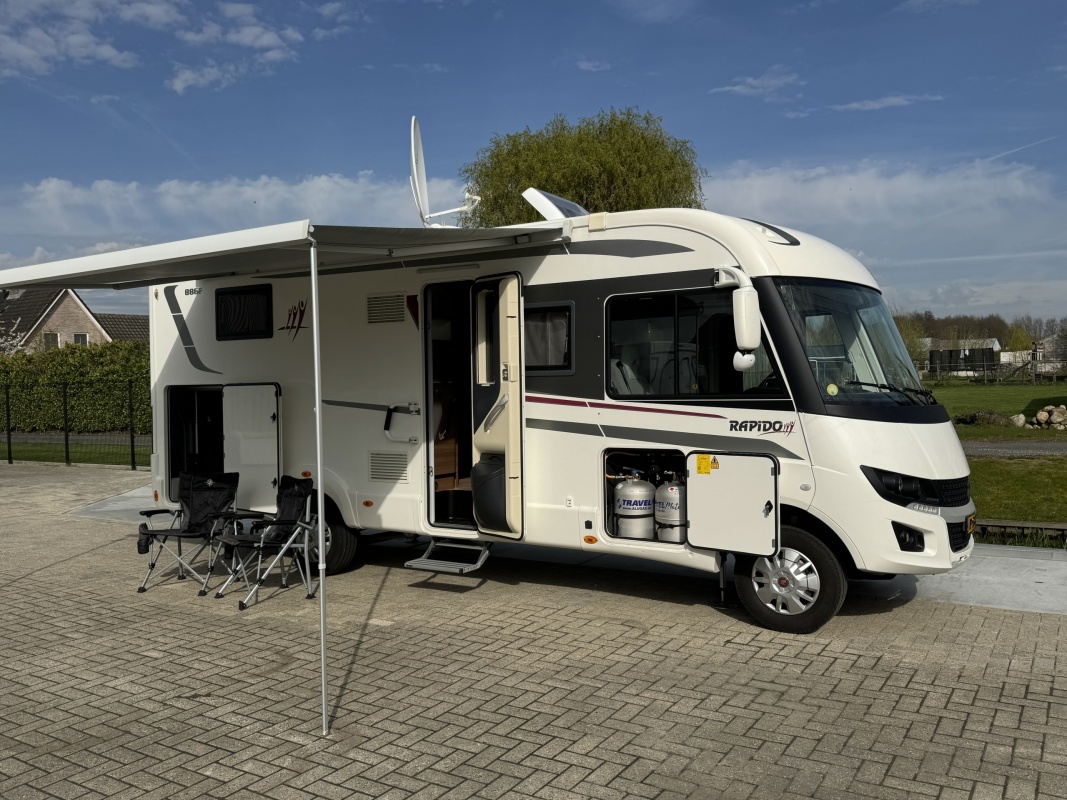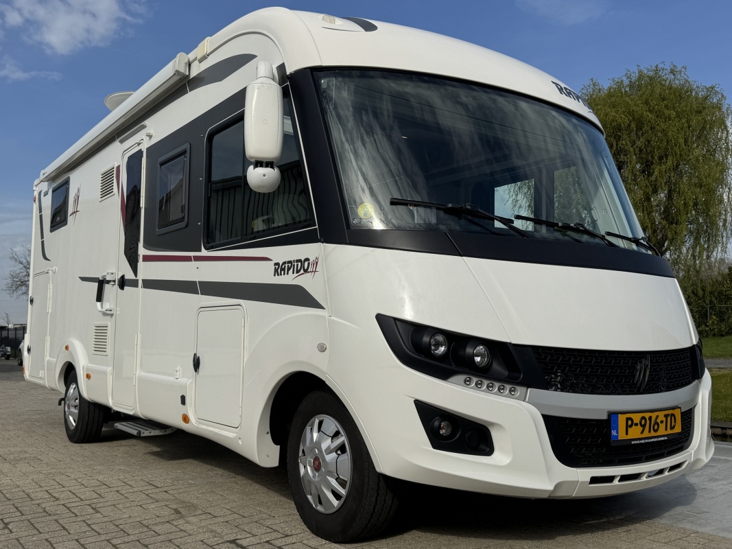 NIEUW BINNEN - in absolute NIEUWSTAAT verkerende Rapido 886 F integraal camper met top indeling! Achter een groot in hoogte verstelbaar queensbed met gemakkelijke instap en veel ruimte om het bed en een XXL garage eronder! De face to face zitgroep maakt hem heerlijk ruim! Wilt u logés meenemen? Voorin boven de cabine is een groot twee persoons hefbed die u in een handomdraai laat zakken.