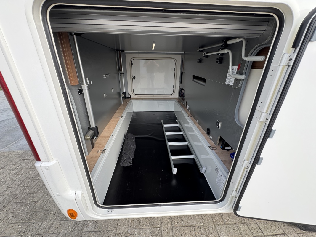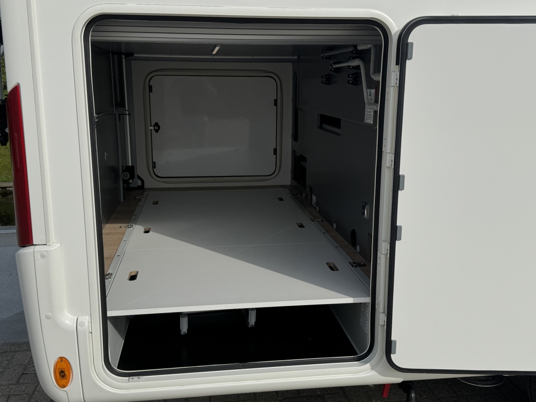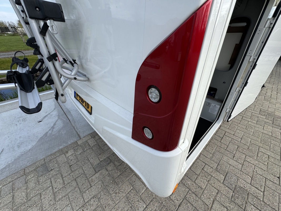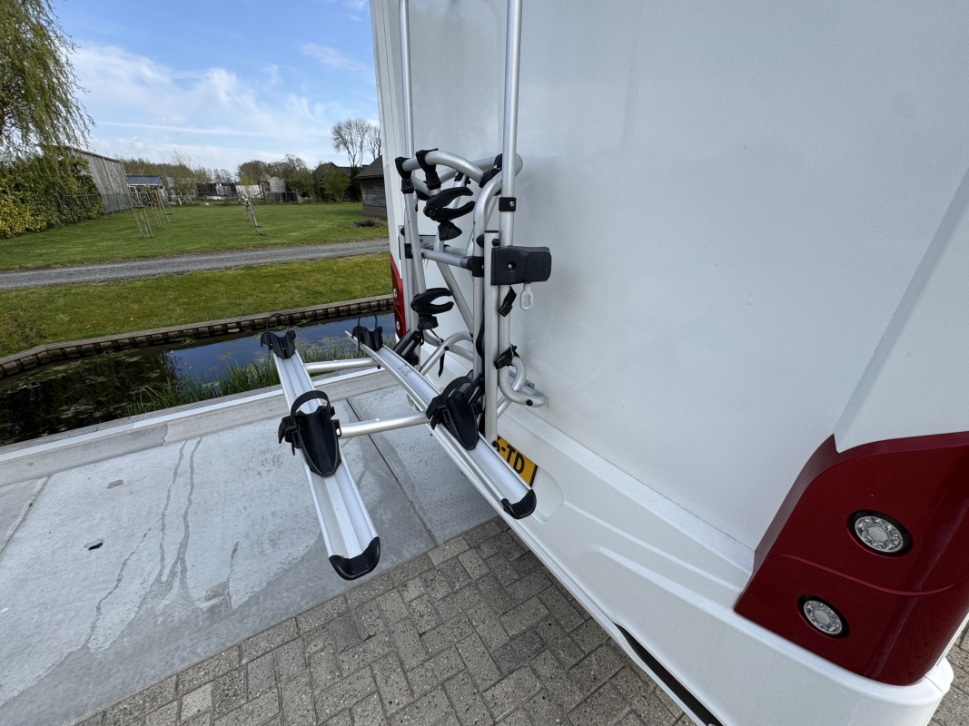 Ontzettend compleet is hij ook nog eens! Hij is al uitgerust met een automatisch levelsysteem, grootbeeld navigatie en multimediasysteem, een camera, extra cabine isolatie!, een bearlock, een zonnepaneel, 85cm schotel, 2 flatscreen tv's, een truma combi boiler die zowel op gas als op 230 volt werkt, een fietsenrek met lift en nog veel meer, zie ook de uitgebreide accessoire lijst.