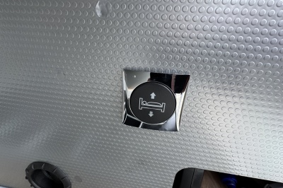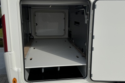 Achterin een groot twee persoons queensbed met een gemakkelijke instap en veel ruimte om het bed! Het bed is elektrisch in hoogte verstelbaar zodat de garage nog grote gemaakt kan worden!