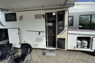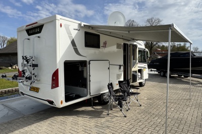 Ontzettend compleet is hij ook nog eens! Hij is al uitgerust met een automatisch levelsysteem, grootbeeld navigatie en multimediasysteem, een camera, extra cabine isolatie!, een bearlock, een zonnepaneel, 85cm schotel, 2 flatscreen tv's, een truma combi boiler die zowel op gas als op 230 volt werkt, een fietsenrek met lift en nog veel meer, zie ook de uitgebreide accessoire lijst.